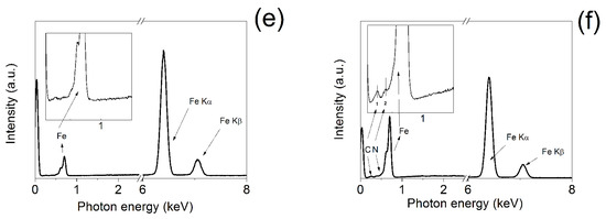 Interference shielding was evaluated using complex magnetic permeability and dielectric permittivity of SE with randomly distributed particles (30 vol.%) of both types, coated and uncoated in silicone matrix, have been measured at room temperature in the frequency range of 1 × 107–3 × 109 Hz by the impedance method with an impedance/material analyzer Agilent E4991A (Agilent Technologies, Tokyo, Japan). The investigation of dielectric properties was carried out on circular samples with diameters of 15 mm, whereas the measurements of complex magnetic permeability were performed on toroidal samples with an outer diameter of 8 mm and an inner diameter of 3.1 mm. Specimens for both characterizations were cut out of previously prepared plates (thickness 500 μm) by a manual press. In order to estimate the absorbing properties of single-layer metal-backed ESMs based on investigated SE, the frequency dependence of the reflection coefficient, R, representing the absorbing ability of ESMs in decibels, has been calculated. When the level of R is equal to −10 dB and the absence of transmitted energy is presumed, then 90% of absorption of incident energy by ESM is obtained. Given that an electromagnetic wave is incident on the ESM surface along the normal, R from the surface of such a material can be calculated according to Equations (1)–(3) present in this paper, those are more precisely described in the paper Lopatin et al. [21,49]: