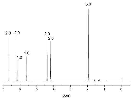 1HNMR spectrum of the 2-(1H-pyrrole-1-yl)ethyl methacrylate (PyEMA).