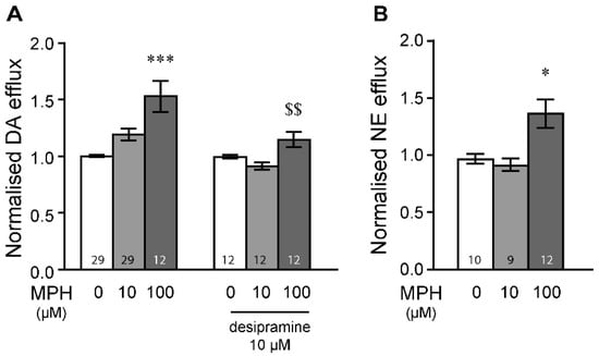 2.3. Dopamine Efflux, but Not Dopamine Release, Is Modulated by MPH in the Striatum