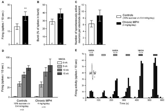 - Salek, R.L.; Claussen, C.M.; Pérez, A.; Dafny, N. Acute and Chronic Methylphenidate Alters Prefrontal Cortex Neuronal Activity Recorded from Freely Behaving Rats. Eur. J. Pharmacol. 2012, 679, 60–67. [Google Scholar] [CrossRef]