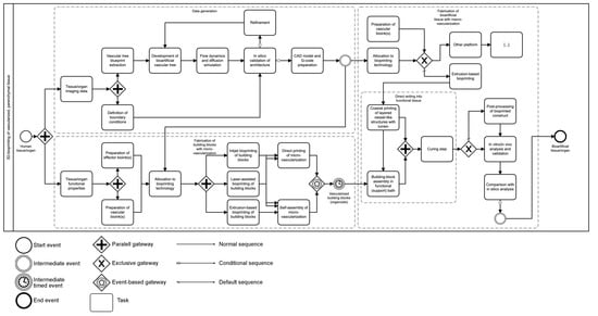End-to-end manufacturing concept based on imaging data. Discussion of a concept for 3D bioprinting of vascularized parenchymal tissue. Process model for fabrication of vascularized parenchymal tissue potentially integrating several printing technologies in one fabrication process (business process model and notation [BPMN] 2.0).