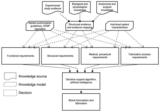 A discussion of an exemplary manufacturing process model for a fabrication and decision model for bioink development for future tissue-engineered products.