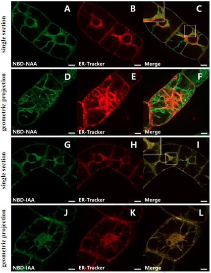 2.2. NBD-NAA Links to Endoplasmic Reticulum (ER) and Tonoplast, NBD-IAA to the ER