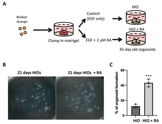 2.2. Retinoic Acid Improves HIO Outgrowth