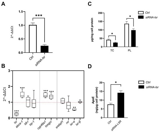 2.1. Effect of siRNA-Mediated lsr Knockdown on Astrocyte Cholesterol Homeostasis