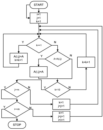 Flow diagram of the algorithm controlling the calculations, where i—protein index; j—ligand index; k—search variant index; m—number of proteins; n—number of ligands; A—affinity for the current protein and ligand; Aset—set of affinity values.