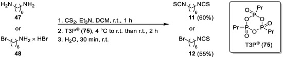 Method D: synthesis of isothiocyanates 11 and 12 using propane phosphonic acid anhydride (T3P) (75).