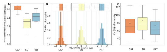 Figure 6C. According to this, these proteins have a lower median CV in PRT samples (64%) than in either SU (77%) or CAP samples (70%).