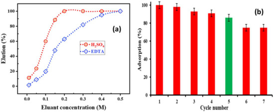 The pH has a vital role in reducing or increasing the adsorption selectivity of efficiently hydrolysable metal ions. As already established, most metal ions are hydrated in water [60]. Figure 6a indicates the pH dependency of Co2+ ions on PTU-MSA. The Co2+ ions form insoluble aqueous complexes with increased pH, when Co2+ ions undergo hydrolysis reactions in water.