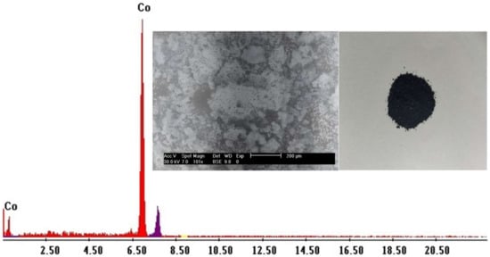 The intercept and slope of the plot of log Kd vs. 1/T for the cobalt adsorption system were used to compute the values of ΔH° and ΔS°, besides the values of ΔG° from Equation (4) [79]. The thermodynamic parameters are shown in Table 6. Both ΔH° and ΔS° are positive, and TΔS° is larger than ΔH°.