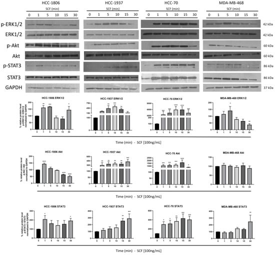 2.3. SCF Induces Activation of STAT3, Akt and ERK1/2