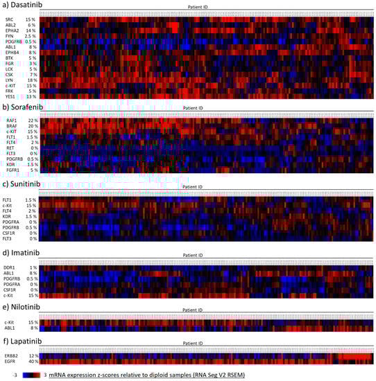 - Zhu, Y.; Wang, Y.; Guan, B.; Rao, Q.; Wang, J.; Ma, H.; Zhang, Z.; Zhou, X. c-Kit and PDGFRA gene mutations in triple negative breast cancer. Int. J. Clin. Exp. Pathol. 2014, 7, 4280–4285. [Google Scholar]