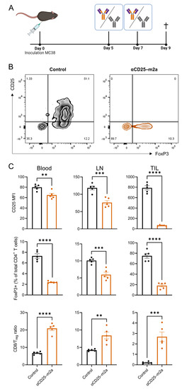- Setiady, Y.Y.; Coccia, J.A.; Park, P.U. In Vivo Depletion of CD4+FOXP3+ Treg Cells by the PC61 Anti-CD25 Monoclonal Antibody Is Mediated by FcgammaRIII+ Phagocytes. Eur. J. Immunol. 2010, 40, 780–786. [Google Scholar] [CrossRef]