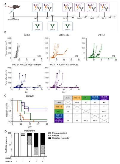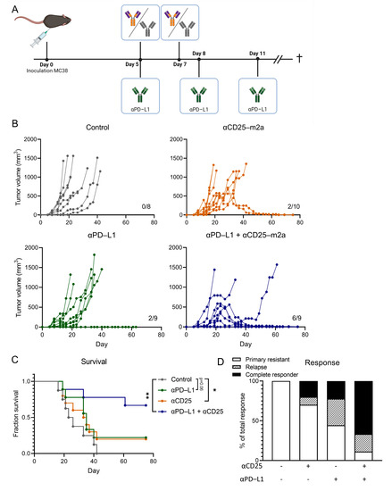 2.2. CD25-m2a Treatment Synergizes with an αPD-L1 Treatment