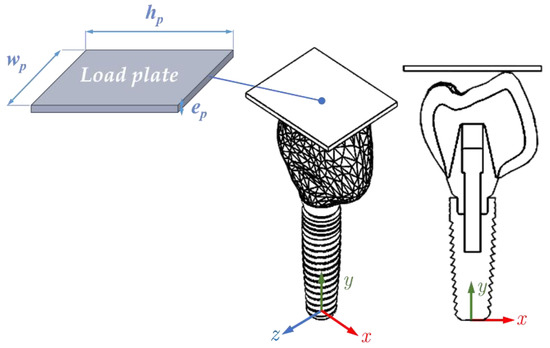 Whole implant and load plate (wp = 10, hp = 12, ep = 2 mm). For simplicity, the bone structure is not shown.