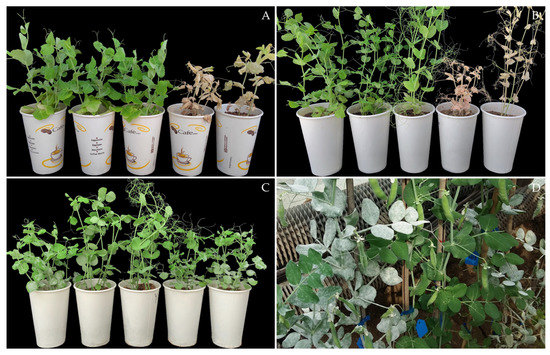 - Haglund, W.A. A rapid method for inoculating pea seedlings with Fusarium oxysporum f. sp. pisi. Plant Dis. 1989, 73, 457–458. [Google Scholar] [CrossRef]