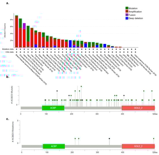 2.2. ACBD3 Gene Amplification and Mutation in Cancer