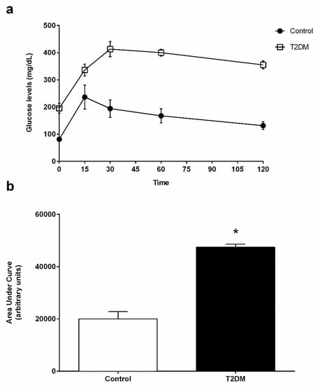 | Glycaemia (mg/dL) | 90.63 ± 6.71 | 342.50 ± 42.08 * |