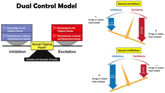 - Bancroft, J.; Janssen, E. The Dual Control Model of Male Sexual Response: A Theoretical Approach to Centrally Mediated Erectile Dysfunction. Neurosci. Biobehav. Rev. 2000, 24, 571–579. [Google Scholar] [CrossRef]