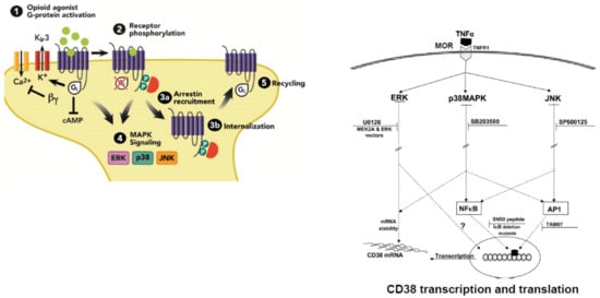 - Kramer, H.K.; Simon, E.J. μ and δ-Opioid Receptor Agonists Induce Mitogen-Activated Protein Kinase (MAPK) Activation in the Absence of Receptor Internalization. Neuropharmacology 2000, 39, 1707–1719. [Google Scholar] [CrossRef]