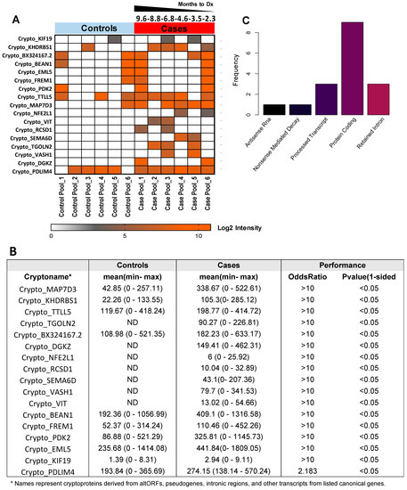 - Yan, Y.; Sun, N.; Wang, H.; Kobayashi, M.; Ladd, J.J.; Long, J.P.; Lo, K.C.; Patel, J.; Sullivan, E.; Albert, T. Whole Genome–Derived Tiled Peptide Arrays Detect Prediagnostic Autoantibody Signatures in Non–Small-Cell Lung Cancer. Cancer Res. 2019, 79, 1549–1557. [Google Scholar] [CrossRef]