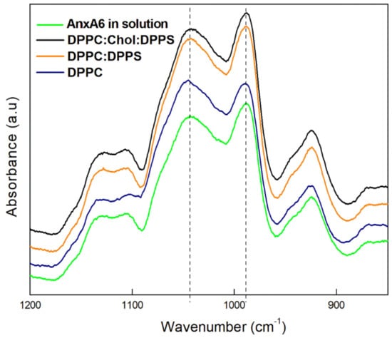 The minerals produced by each proteoliposome harbouring AnxA6 as well as by free AnxA6 in the presence of PS–CPLX were assessed by the FTIR analysis (Figure 3).