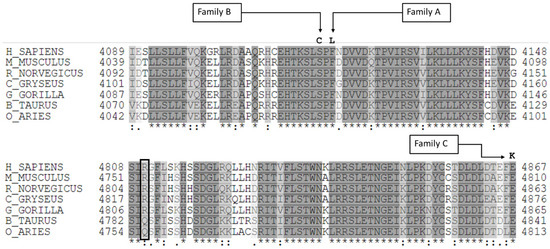 - Sievers, F.; Higgins, D.G. Clustal Omega for making accurate alignments of many protein sequences. Protein Sci. 2018, 27, 135–145. [Google Scholar] [CrossRef]