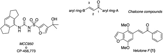Synthesis and NLRP3-Inflammasome Inhibitory Activity of the Naturally Occurring Velutone F and of Its Non-Natural Regioisomeric Chalconoids