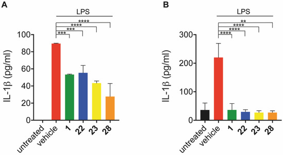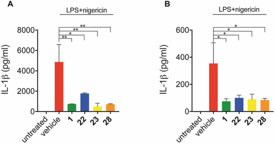 2.3.3. Inhibition of IL-1β Release In Vitro and In Vivo