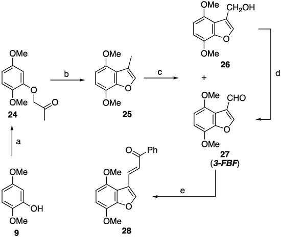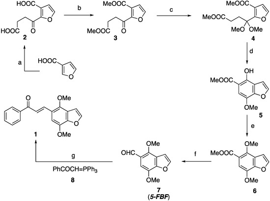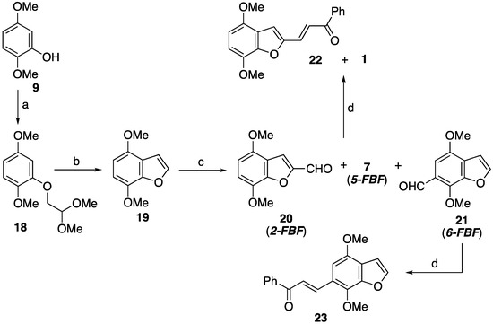 - Song, S.-Y.; Lu, H.-L.; Wang, G.-F.; Yang, Y.-Q.; Huang, Y.-S. An improved and scale-up synthesis of 6-hydroxybenzofuran. Res. Chem. Intermed. 2016, 42, 4433–4442. [Google Scholar] [CrossRef]