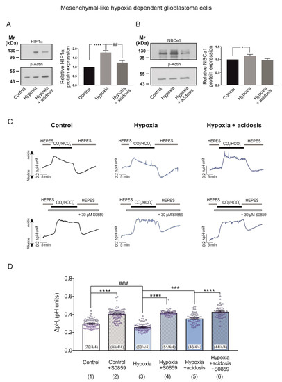 Taken together, these results demonstrate that hypoxia has a different effect on NBCe1 protein and activity in MES-like hypoxia-dependent and hypoxia-independent GBM cells.