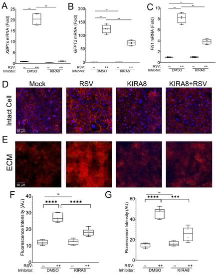 2.4. IRE1α–XBP1 Arm of UPR Regulates RSV-Induced Secretome