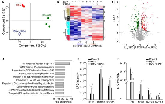 2.2. Proteomics Analysis of the Effect of the IRE1α–XBP1 Arm of UPR on RSV-Induced Host Response