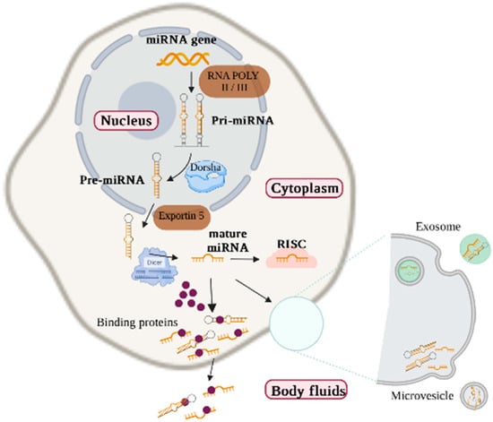 The biogenesis of miRNA and how they are being transported to various body fluids.