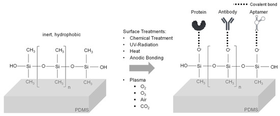 - Zhou, J.; Ellis, A.V.; Voelcker, N.H. Recent developments in PDMS surface modification for microfluidic devices. Electrophoresis 2010, 31, 2–16. [Google Scholar] [CrossRef] [PubMed]