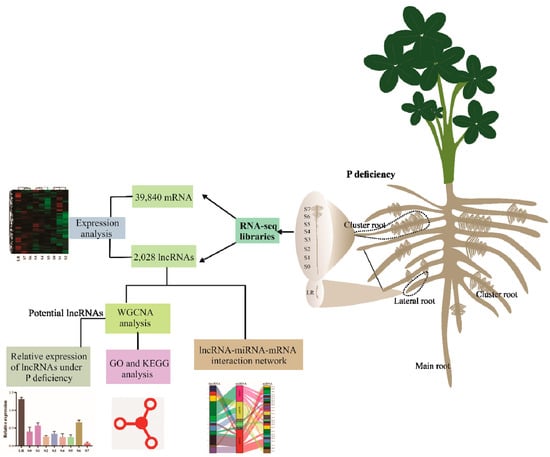 Global Identification of White Lupin lncRNAs Reveals Their Role in Cluster Roots under Phosphorus Deficiency