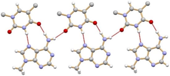 - Hoogsteen, K. The crystal and molecular structure of a hydrogen-bonded complex between 1-methylthymine and 9-methyladenine. Acta Crystallogr. 1963, 16, 907–916. [Google Scholar] [CrossRef]