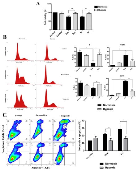 2.2. Hypoxia Enhances Chemoresistance to Doxorrubicin and Teniposide