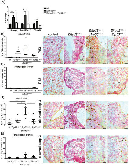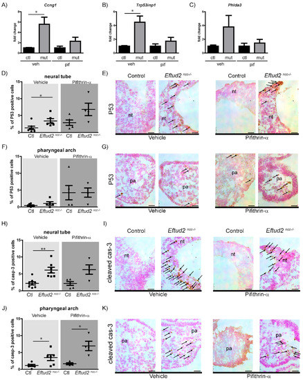 Eftud2ncc−/− embryos and that this increase was attenuated by pifithrin-α. More specifically, we show that