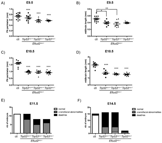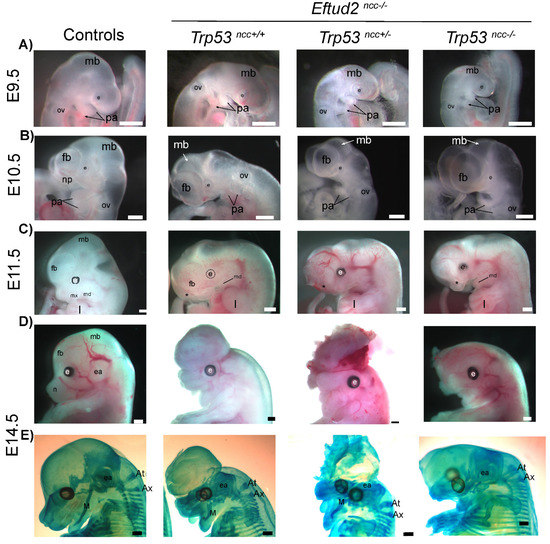 Eftud2ncc−/− embryos that were wild-type or mutant for