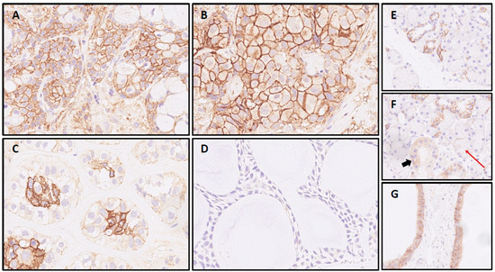 - Wolber, P.; Nachtsheim, L.; Hoffmann, F.; Klussmann, J.P.; Meyer, M.; von Eggeling, F.; Guntinas-Lichius, O.; Quaas, A.; Arolt, C. Trophoblast Cell Surface Antigen 2 (Trop-2) Protein is Highly Expressed in Salivary Gland Carcinomas and Represents a Potential Therapeutic Target. Head Neck Pathol. 2021, 15, 1147–1155. [Google Scholar] [CrossRef]
