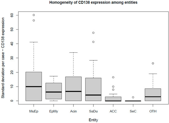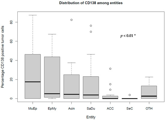 | Variable | CD138 Expression (All Entities) | CD138 Expression (SaDu) | CD138 Expression (MuEp) | CD138 Expression (ACC) | ||||
