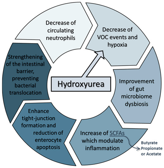 Considering all these studies, it is unquestionable that HU has a protective effect, not only by improving several hematological parameters but also by lowering the risk of some bacterial infections. However, the direct impact of this type of treatment on the human microbiome has not yet been investigated.