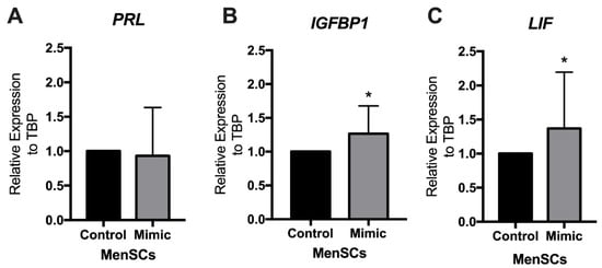 2.3. Estradiol and Progesterone Treatment Increase the Expression of LIF and IGFBP1 in MenSCs