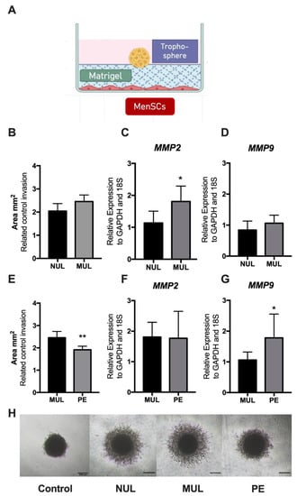 2.5. The Invasive Potential of Trophospheres Is Reduced When Co-Cultured with PE-MenSCs
