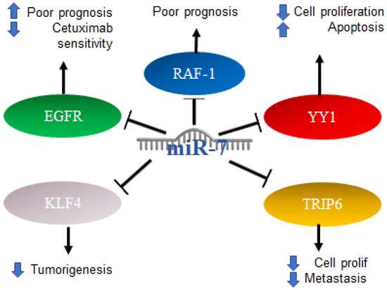 - Suto, T.; Yokobori, T.; Yajima, R.; Morita, H.; Fujii, T.; Yamaguchi, S.; Altan, B.; Tsutsumi, S.; Asao, T.; Kuwano, H. MicroRNA-7 expression in colorectal cancer is associated with poor prognosis and regulates cetuximab sensitivity via EGFR regulation. Carcinogenesis 2014, 36, 338–345. [Google Scholar] [CrossRef] [PubMed]