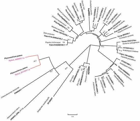 - Rensing, S.A.; Lang, D.; Zimmer, A.D.; Terry, A.; Salamov, A.; Shapiro, H.; Nishiyama, T.; Perroud, P.-F.; Lindquist, E.A.; Kamisugi, Y. The Physcomitrella genome reveals evolutionary insights into the conquest of land by plants. Science 2008, 319, 64–69. [Google Scholar] [CrossRef] [PubMed]