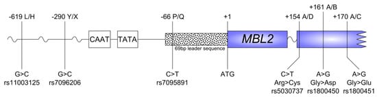- Madsen, H.O.; Garred, P.; Thiel, S.; Kurtzhals, J.A.; Lamm, L.U.; Ryder, L.P.; Svejgaard, A. Interplay between promoter and structural gene variants control basal serum level of mannan-binding protein. J. Immunol. 1995, 155, 3013–3020. [Google Scholar] [PubMed]