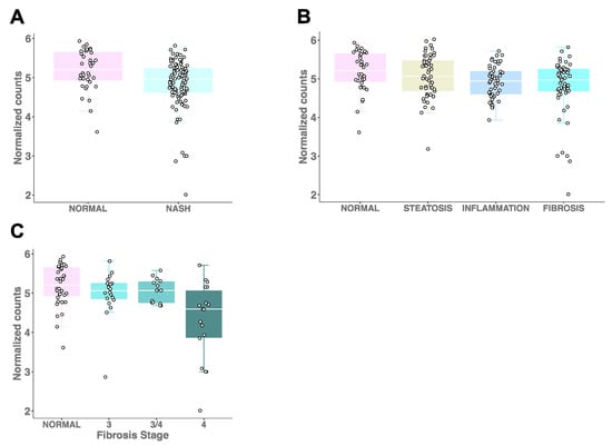 2.2. Hepatic PEMT Expression Is Significantly Reduced in Individuals with Fibrosis