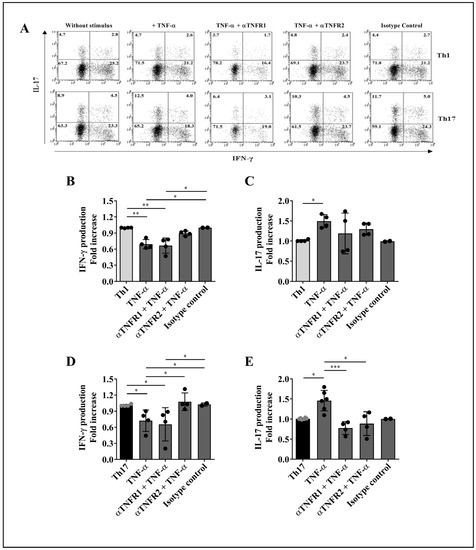 2.1. TNF-α Reduces IFN-γ and Increases IL-17 Production by Th1 and Th17 Cells